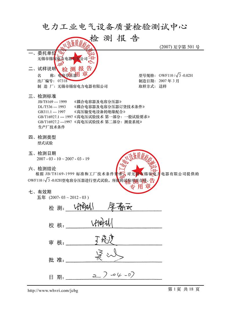 Test report release time:2020-07-20 04:02:47source:Wuxi Xirong Electric Appliance Co., Ltd.Click:1621